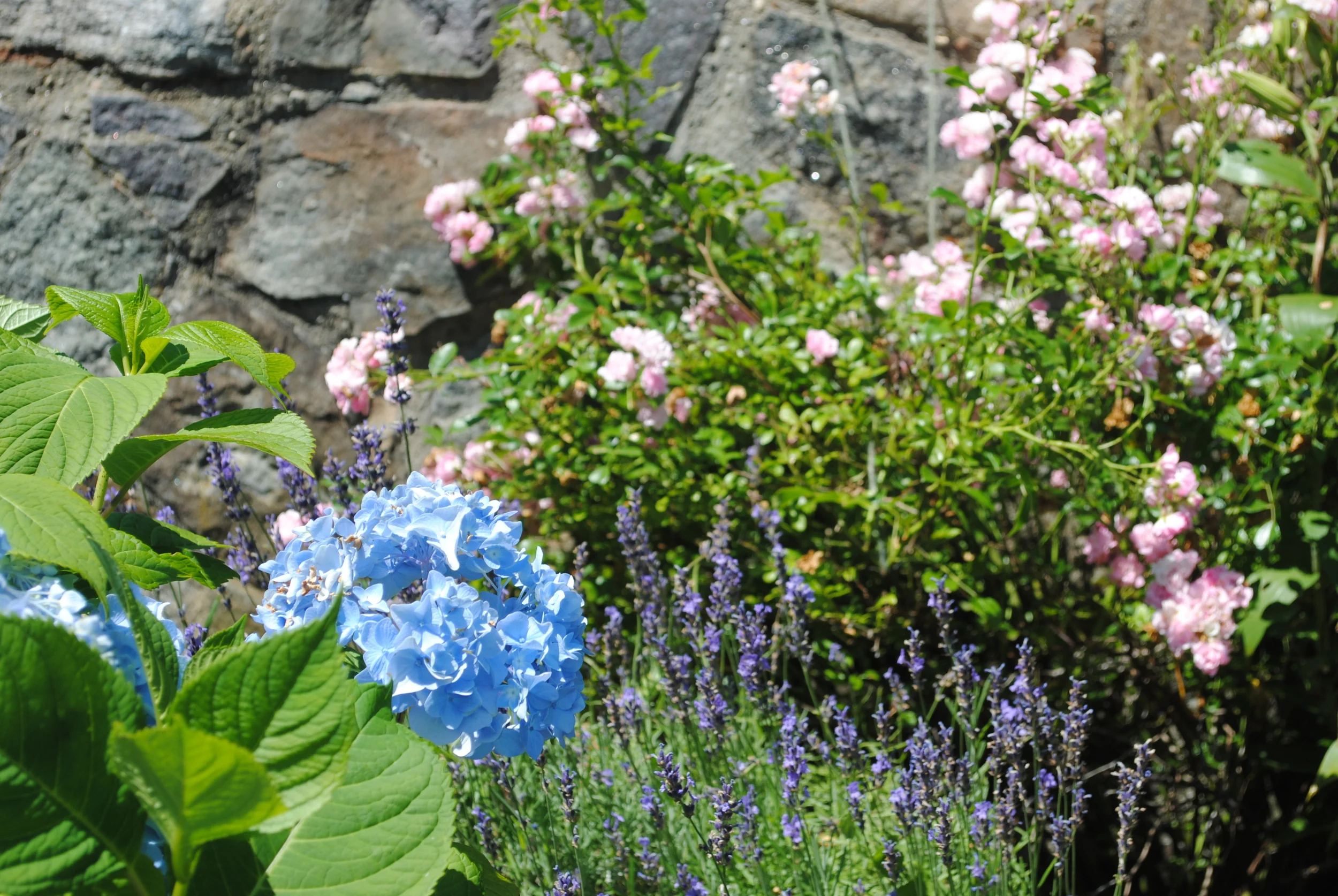 Stonewall With Flower Garden